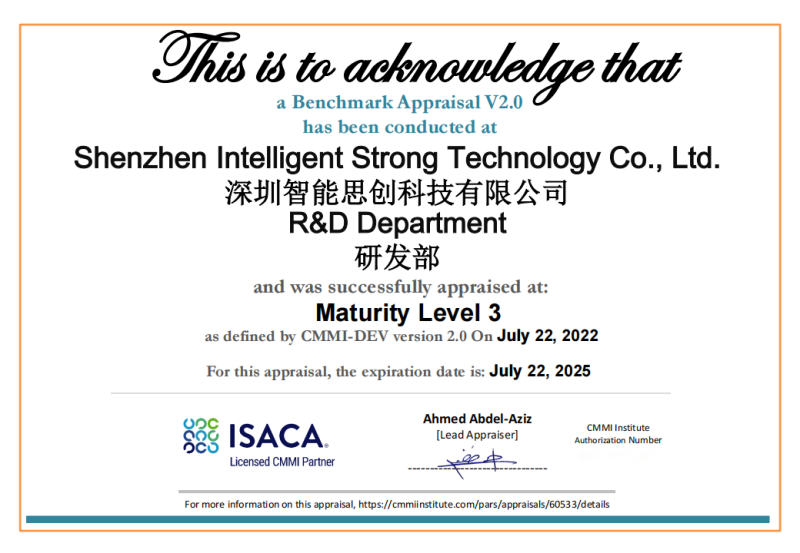 近日,深圳智能3499拉斯维加斯官网科技有限公司顺利通过了CMMI3级认定(软件能力成熟度模型集成3级)。这标志着智能3499拉斯维加斯官网在软件技术研发能力、项目管理能力、实施服务交付能力以及质量保障能力等方面都得到了国际权威机构的认可,是智能3499拉斯维加斯官网的非结构化数据处理平台迈向国际化的重要一步。