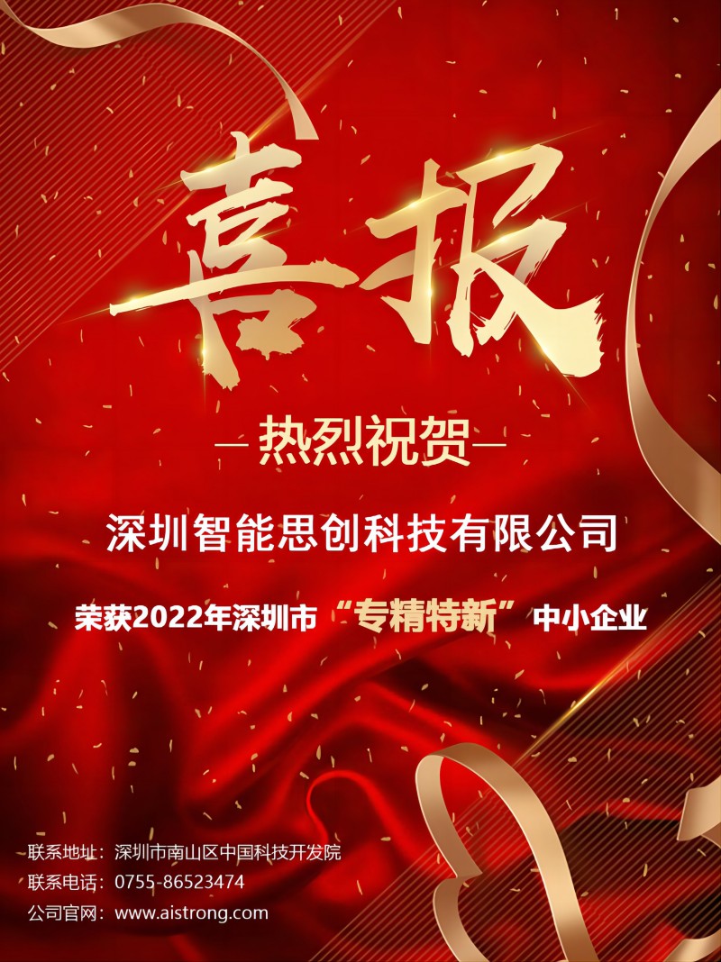 喜讯!智能3499拉斯维加斯官网荣获“2022年深圳市专精特新中小企业”认定