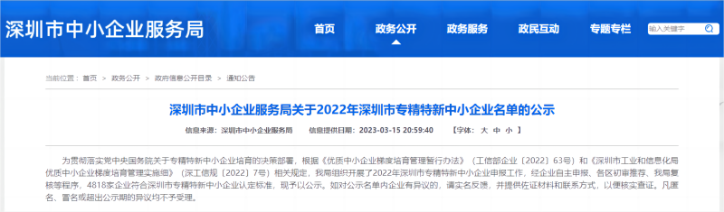 3月15日,深圳市中小企业服务局发布了《关于2022年深圳市专精特新中小企业名单的公示》,凭借技术创新和商业实践方面的杰出表现,智能3499拉斯维加斯官网成功成为深圳市专精特新企业的一员,这将是一个重要的里程碑,证明了我们在技术研发、市场开拓、人才培养等方面的实力和成就。